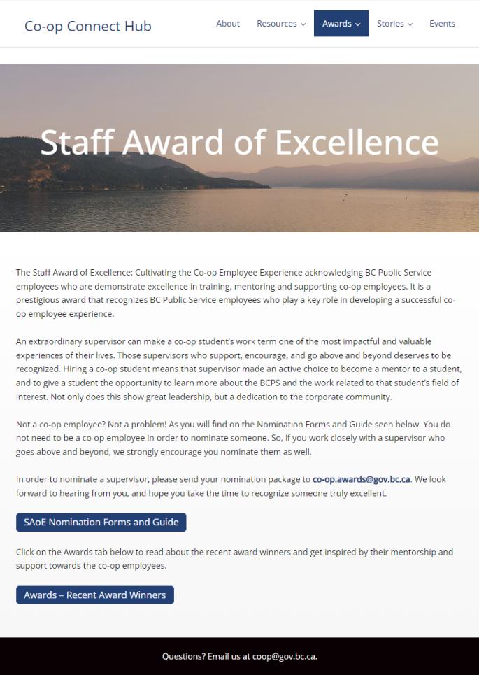 In 2020, I was awarded the BC Public Service Co-op Student Supervision Award for my work mentoring students during the development on the Community Energy and Emissions Database (CEED) project.